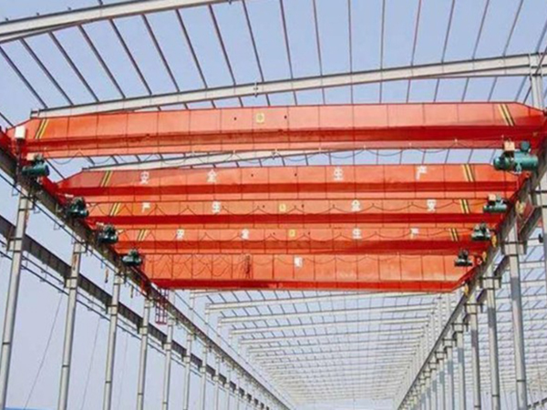 单梁桥式起重机是横架于车间、仓库和料场上空进行物料吊运的起重设备。由于它的两端坐落在高大的水泥柱或者金属支架上,形状似桥。单梁桥式起重机的桥架沿铺设在两侧高架上的轨道纵向运行,可以充分利用桥架下面的空间吊运物料,不受地面设备的阻碍。它是使用范围广、数量多的一种起重机械。